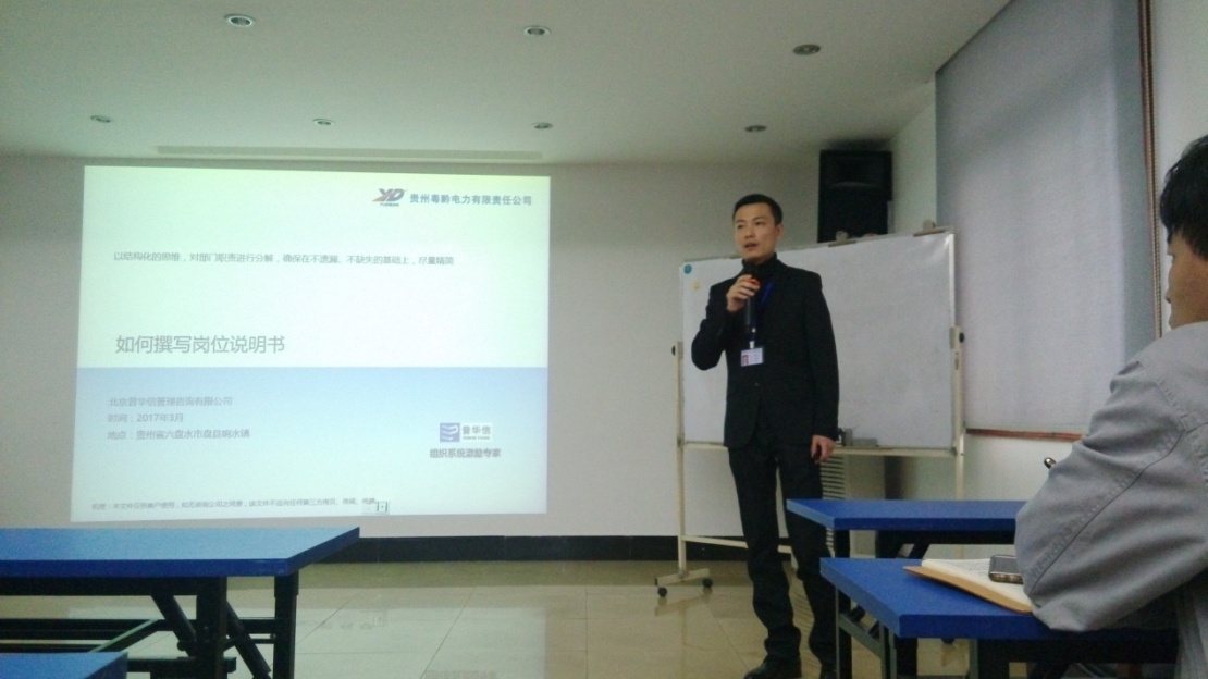 2017年3月30日,李振涛老师为贵州某电厂中层以上管理人员,进行了工作分析培训,培训在员工培训室进行。约30名中层干部,参加了本次培训。
