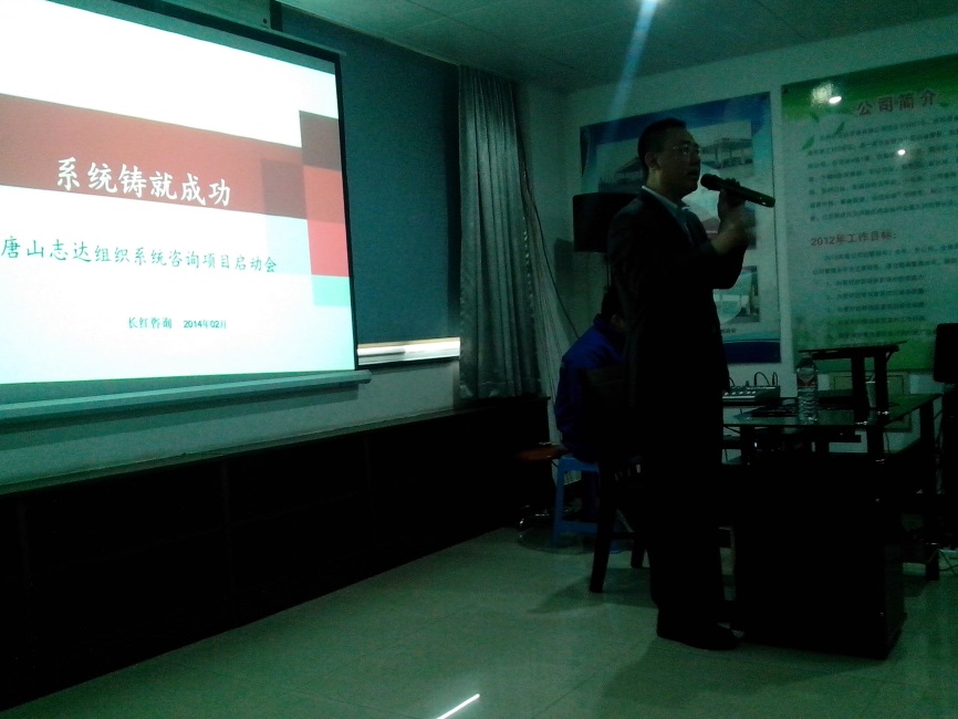 对于企业与咨询公司之间,从接触到合作,再到具体服务,有时候真的与男女之间的相识、相知、相爱到结婚类似。要想修成正果结出硕果,双方一定是以诚相待,最重要的就是最终形成,互相认可,彼此信任的伙伴关系。 2014年3月普华信与志达集团相遇,此时,志达大厦还没有投入使用。在集团下属企业的会议室,举行了启动组织系统建设项目仪式。咨询组由王化丰老师亲自带队,咨询老师有刘玉国老师、王永书老师、潘明阳老师,志达集团刘建国董事长与多名高管一起参加了启动会。标志着志达集团从传统的人盯人的管理模式,正式开启向系统管理迈进的征程。实现“解放老板,快速发展”的效果; 刘董事长在启动会上发表讲话,重点强调此次咨询项目对企业发展的意义。希望大家在老师调研过程中知无不言,言无不尽,反馈企业存在的问题。在后期的方案落地中要积极支持老师们的辅导,积极配合老师的工作。并表达了对组织系统建设成功的决心、信心和恒心。 王化丰老师进行了《系统铸就成功》的培训演讲。高层为什么不能像老板一样工作?中层工作热情为什么难以持久?基层为什么不能积极主动、全力以赴地工作?从三个维度解释企业管理者困惑的原因。引起现场所有人的强烈共鸣。 志达公司对各位老师的生活起居以及工作环境,都进行了悉心的安排,充分体现了对咨询工作的重视,以及对各位老师的尊重。