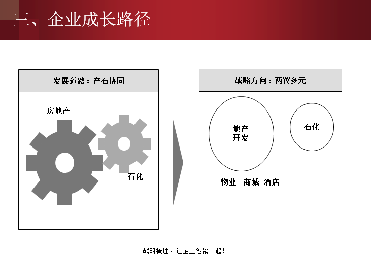 2、梳理了战略方向,明确了公司的业务定位即:以房地产开发为主业,加油站业务;