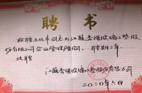 王化丰老师受聘为秀强股份(300160)企业管理咨询顾问
